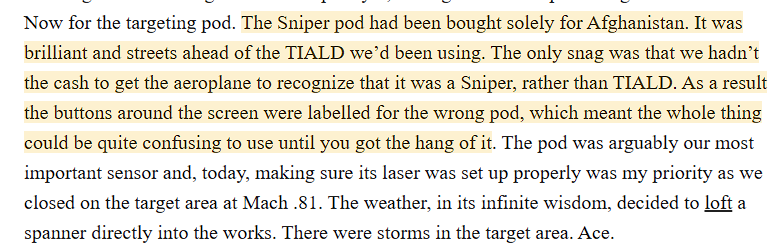 It should finally get Sniper (though so should the GR7) and should also get things like PW4s, but the main addition would be Brimstones, the tricky bit is that it only ever equipped the non-Dual-mode Brimstone 1s, so it would be even more ahistorical than the Typhoons or would have 6-18 FnF Brimstone 1s. So… Balance that as you will.
