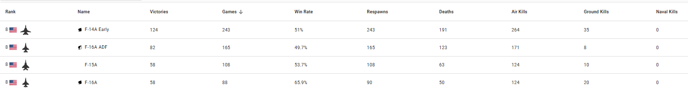 If so your stats are irrelevant. Iv seen the best players saying the f16a isnt good at all for airtb.