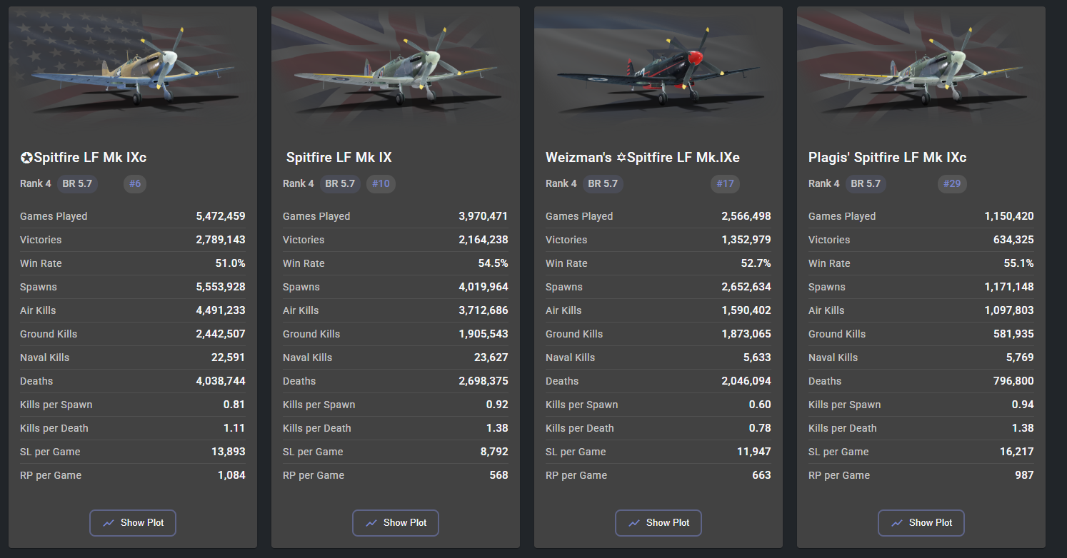 Very obvious outlier in the stats with the USSR stats which are absolutely ridiculous in the thing, that is EXTREME tryhard player stats (Its really weird how sweaty USSR air players are, considering the other two major nations air players are pretty poor quality). USSR sweats also help prove american planes are pretty good out of USA main hands lol