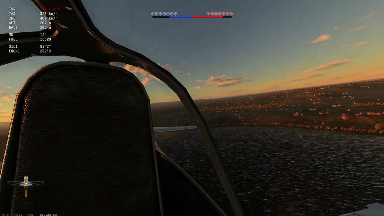 I could hear this spitfire behind me for a good while, even though it is HARDER to hear planes behind than in front. I heard him so early that I was checking behind me to both sides several times and I only managed to finally see him when he got closer and we were over that lagoon.