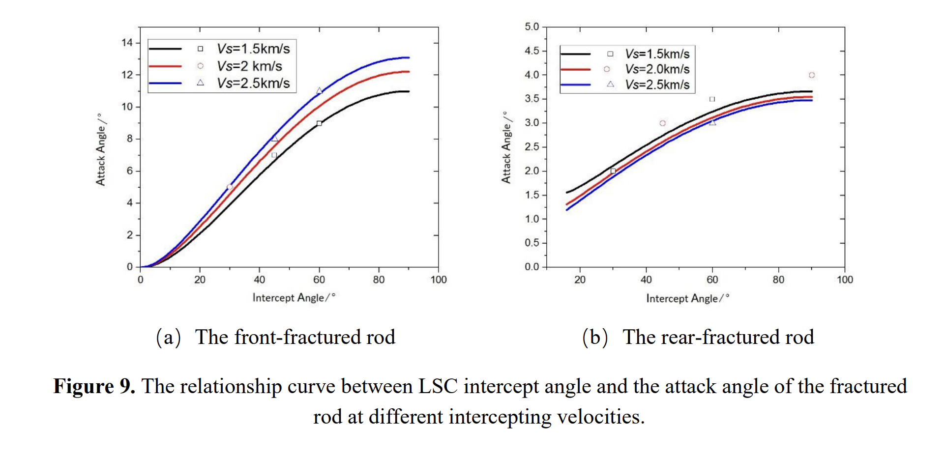 A paper tested when the projectile velocity is 1.5 km/s, the intercept distance(distance between the Linear Shaped Charge plate and target plate) is 10cm, and the intercepting velocity (how fast the LSC was moving after it was set off) is 1.5 km/s, 2.0 km/s and 2.5 km/s. The intercept angle is the angle between the rod and the LSC and the attack angle is the angle at which the rod hits the target plate so the angle between the axis of the rod and the velocity vector of the rod. Even at an intercept angle of 40 degrees the attack angle is 4-6 degrees. The oplot-t has a track side length of 57 cm so techincally the intercept distance is more than 57 cm so if it was 4-6 degrees for 10 cm it would be even more past 57 cm at 40 degrees of interception.