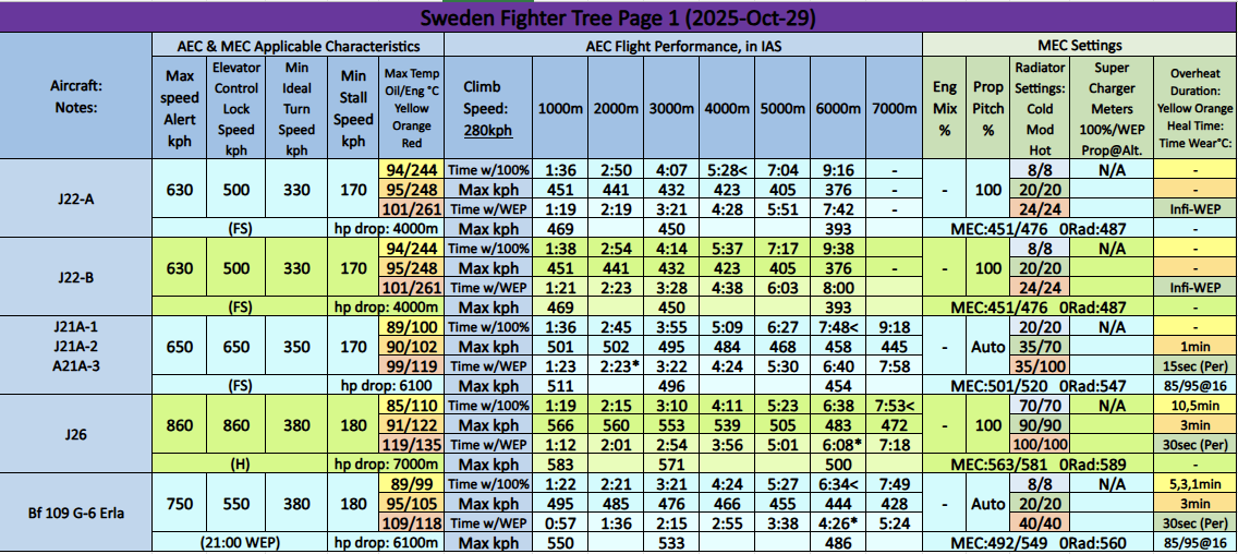 – J26, J26 David: These planes will run hot without MEC. It generally makes sense to use Infi-WEP settings, see details below. Fuel: 31min. Engine hp drop: 7000m.