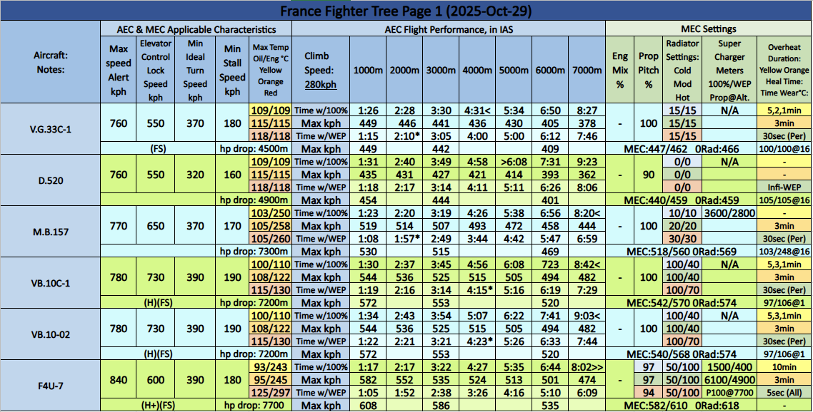 – C. 202, C. 202EC: This plane benefits from MEC over AEC overall. Although Prop100 is in chart due to simplicity of use, Prop92 is a better option overall. It generally makes more sense on Mod & Hot maps to use Prop92 with Rad100/100, Cold Maps should use Infi-WEP settings detailed below. Fuel: 30min. Engine hp drop: 4900m.