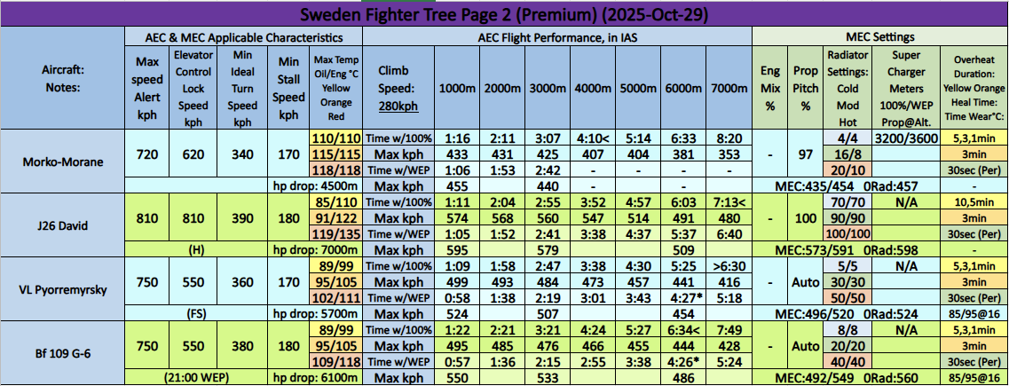 – Morko-Morane: This plane benefits from MEC over AEC with better cooling. Prop97 has same performance as Prop100. Prop97 and allows for Infi-WEP. Fuel: 30min. Engine hp drop: 4500m.