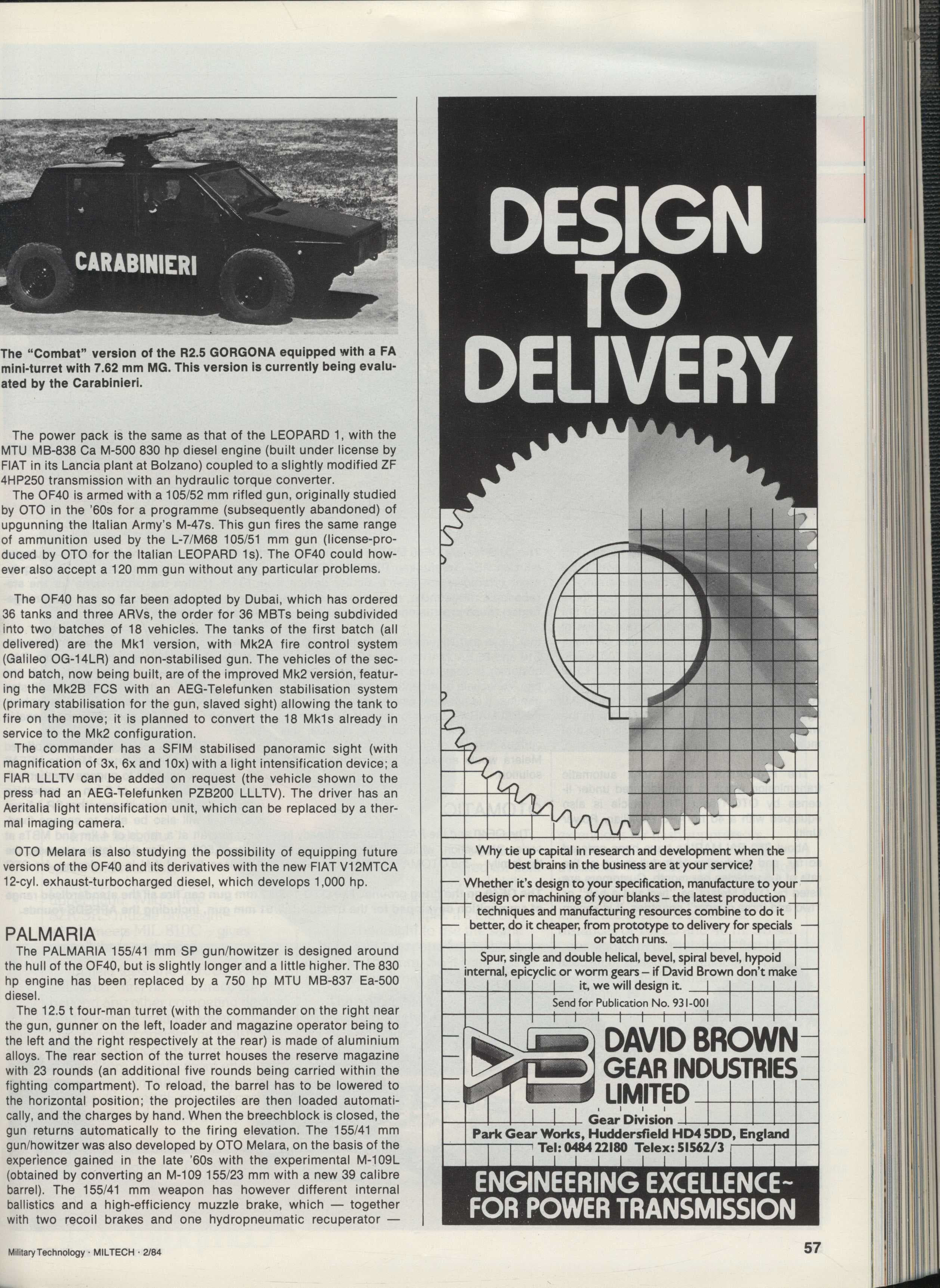 I can say with certainty that all production Palmaria vehicles used the 750 hp MTU MB 837 Ea-series V-8 diesel. This is clearly stated in official OTO Melara advertising, and many articles confirm it.