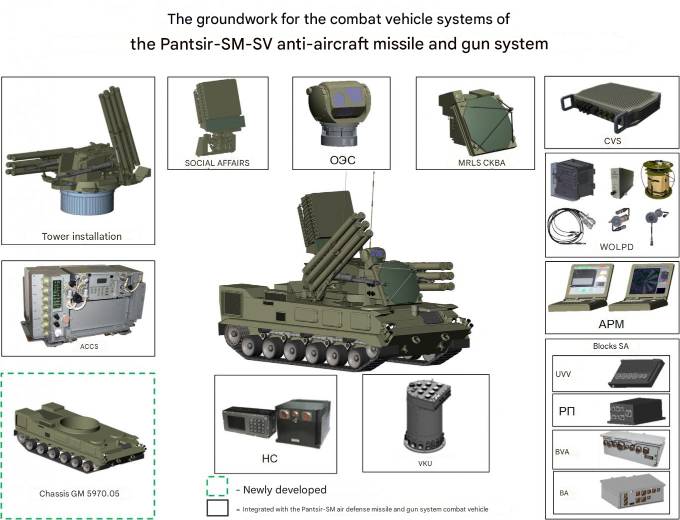 - Grey outline – Unified with the combat vehicle of the Pantsir-SM