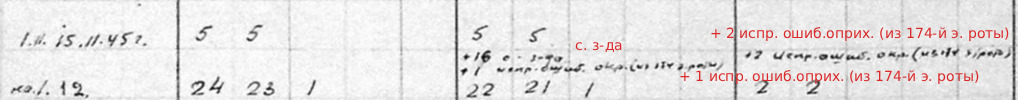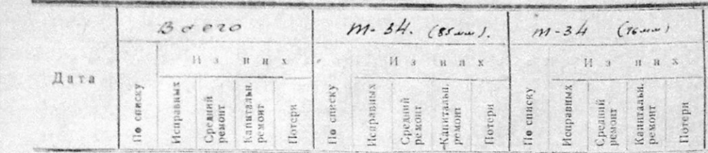 By 1st December 1945, the 73rd Tank Battalion received 16 T-34-85s from a factory(з-га) and a T-34-76 and T-34-85 from 174th Evacuation Company {Rus.174-й эвакуационной роты (из 174-й э. роты)}.