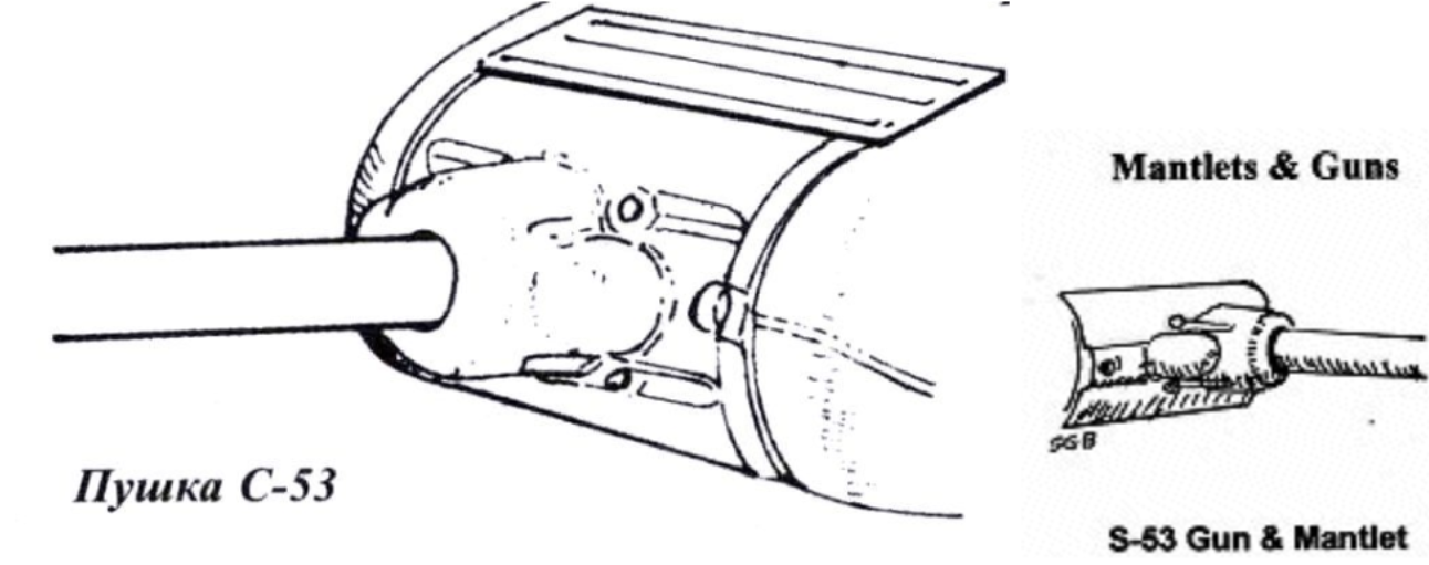 Compared to the D-5T gun, the S-53 had a more compact breech, which allowed for the S-53 turret to be redesigned into a three-man turret, allowing an extra crew to share the commander’s gunner’s duties. The first ammunition rack was moved from beneath the floor into the turret, and a rotating floor plate was introduced, allowing the loader to move with the turret without constant reposition. A shell casing catcher was added beneath the gun.