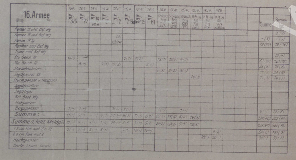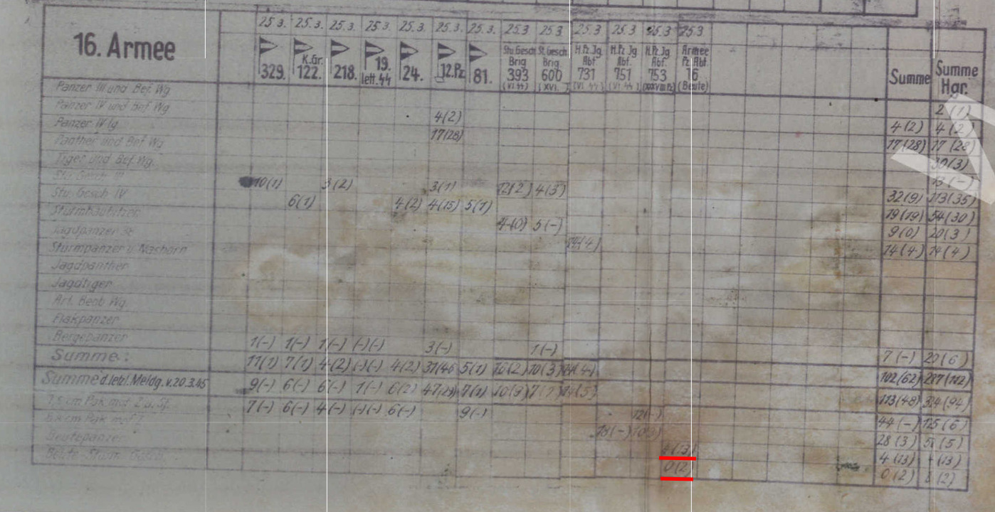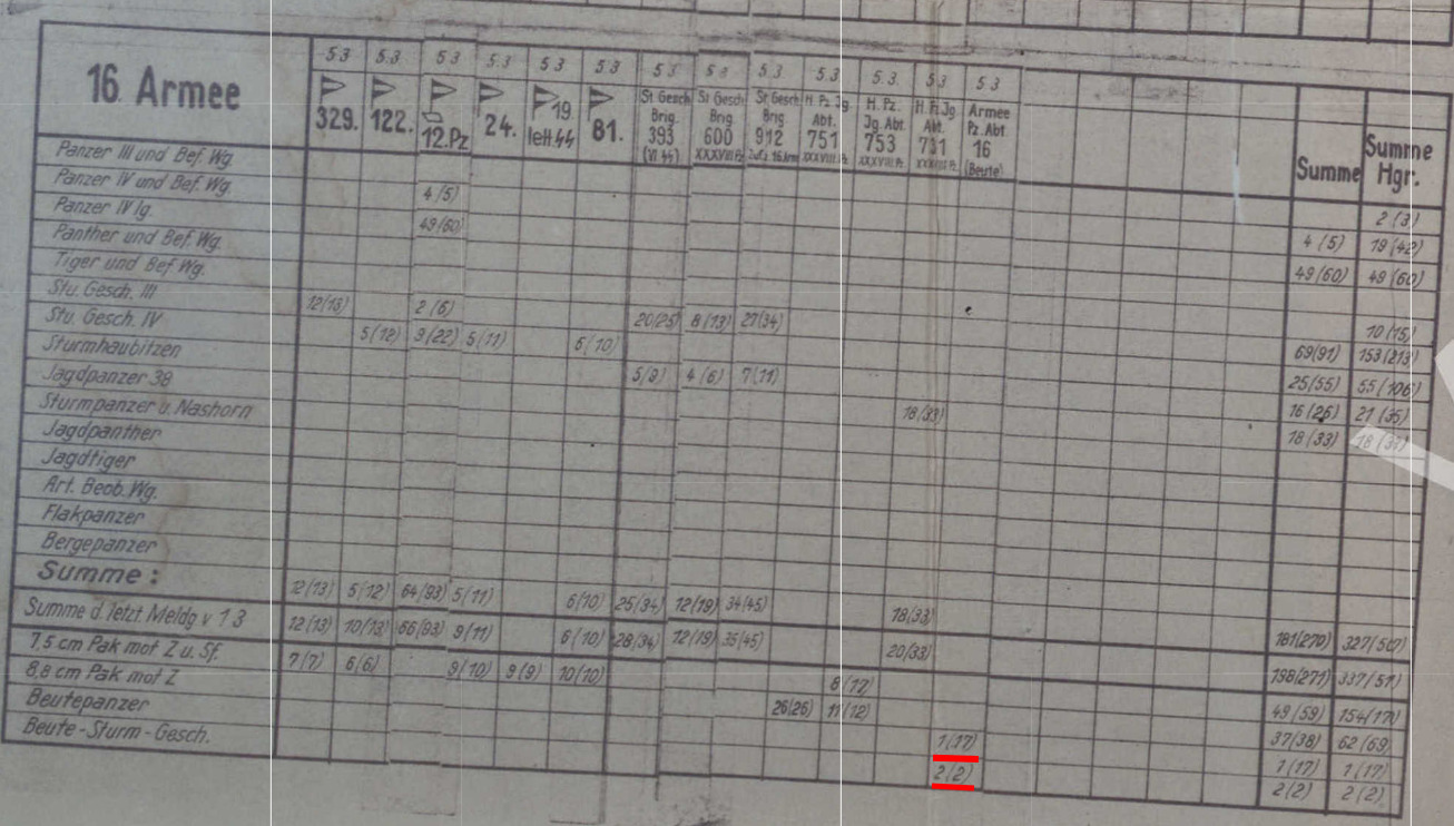 On 5 March 1945, A.Pz.Abt.16 (Beute) had only an operational captured tank and two operational captured assault guns.