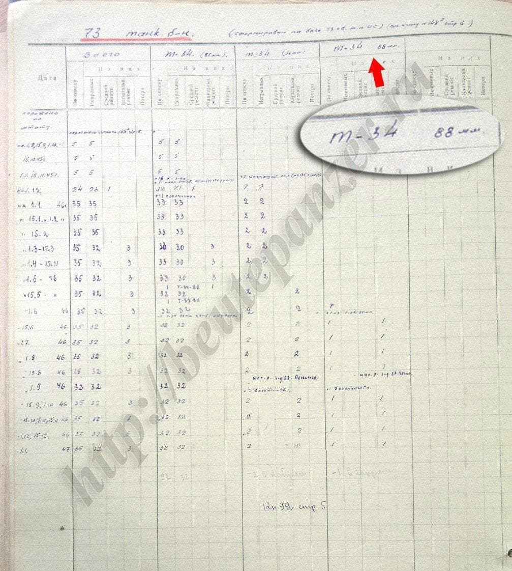 From 1st to 15th March 1946, three out of 33 T-34-85s were sent for Капитальн. ремонт (Eng: major repair). On 15th May 1946, one of them was discovered to be a “T-34-88”.