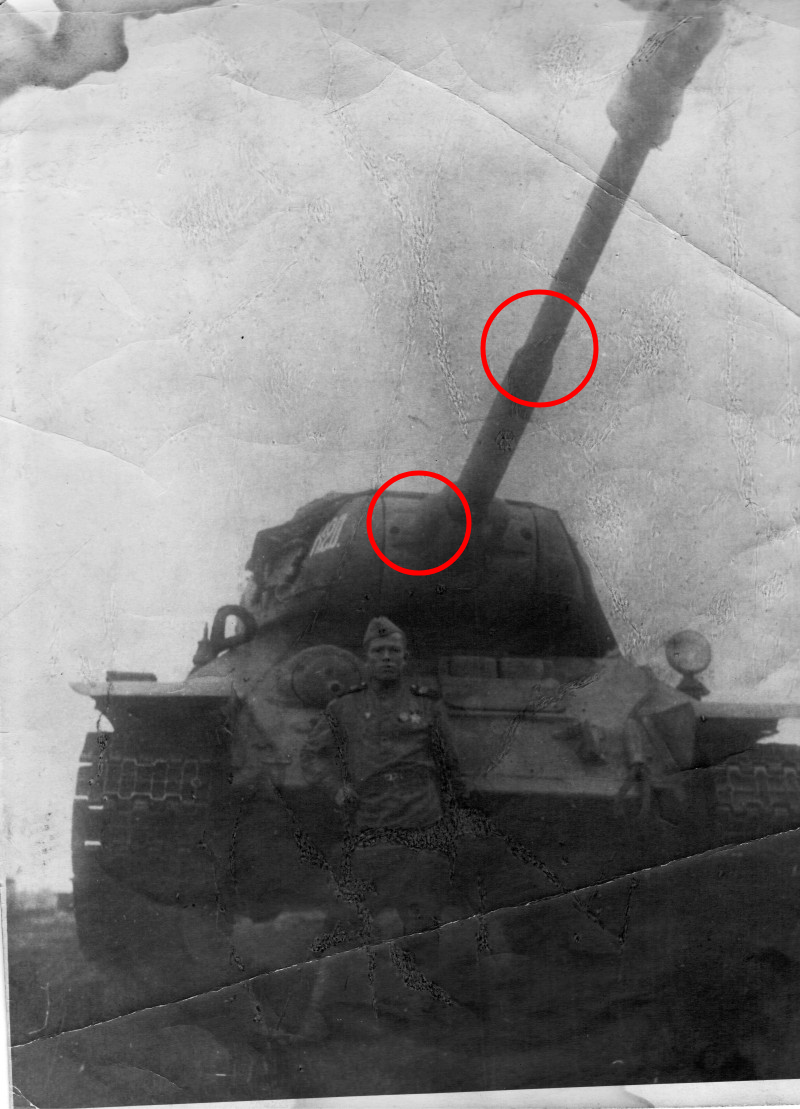 From the 50 mm bulges at each side of the gun collar, it can be determined that the T-34-88 was originally a T-34-85 with S-53 manufactured in Factory No. 183 before July 1944. The main gun barrel was cut, and a new gun tube was inserted into it. Given that only the gun tube, not the gun shield, has been altered, the S-53 recoil system would most likely remain intact, but its gun breech would be bored out to allow the loading of German 88 mm ammunition.