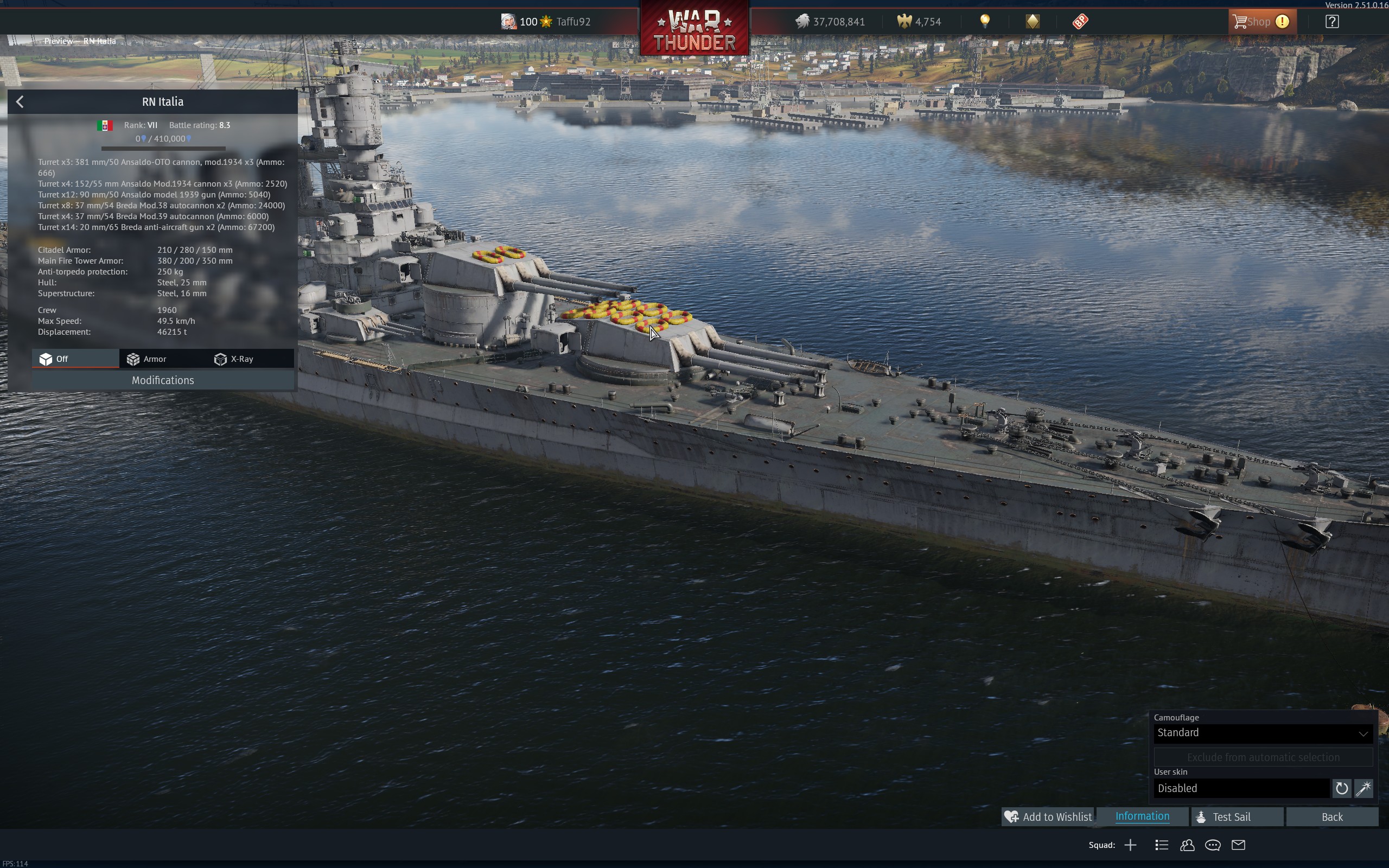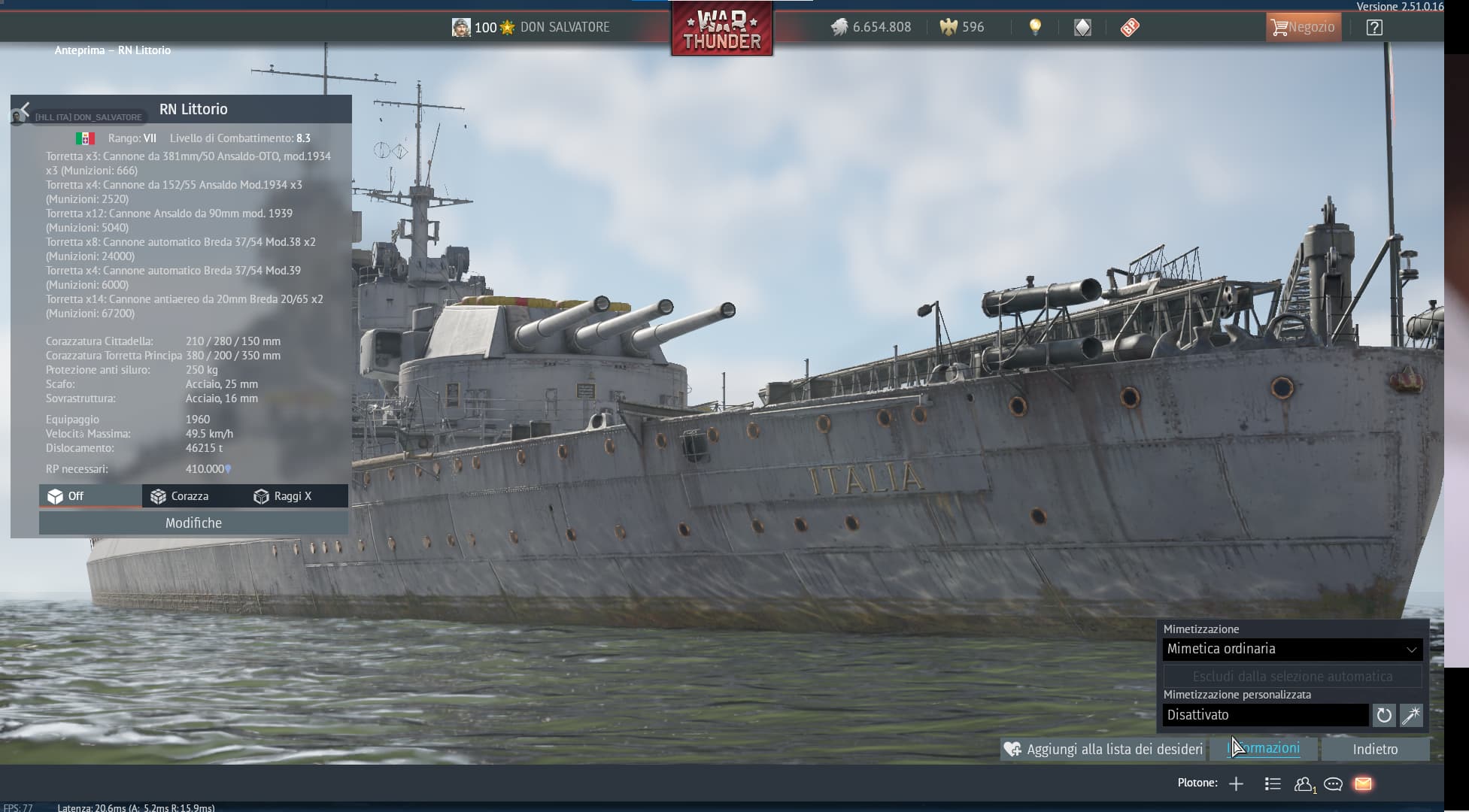 in compenso però possiamo richiedere l’aggiunta della corazzatura supplementare, trattandosi a tutti gli effetti di una nave post seconda guerra mondiale, e quindi più aggiornata della roma