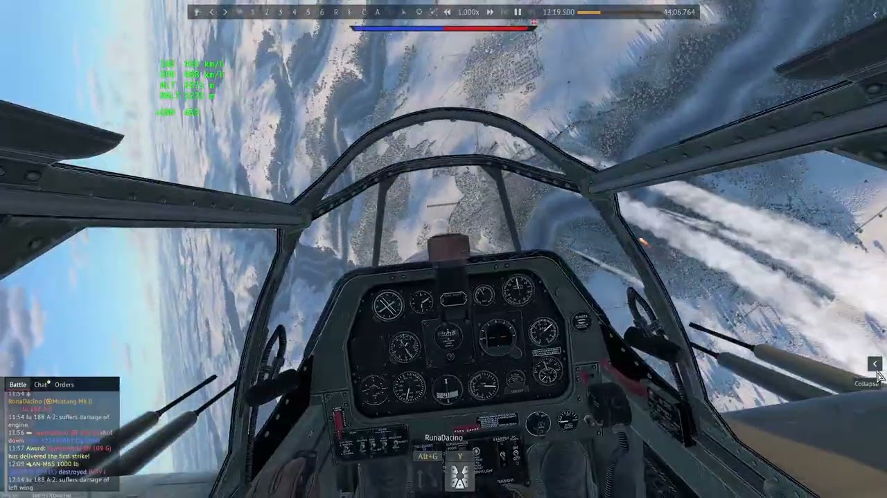 Behold, wing shot off while pulling out of a dive. Immediately start violently tumbling. Within a few seconds, plane straightens out and I'm off safely.