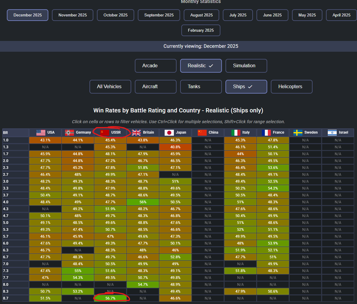 Sovetsky Soyuz Stats from December 2025, for RB and AB: