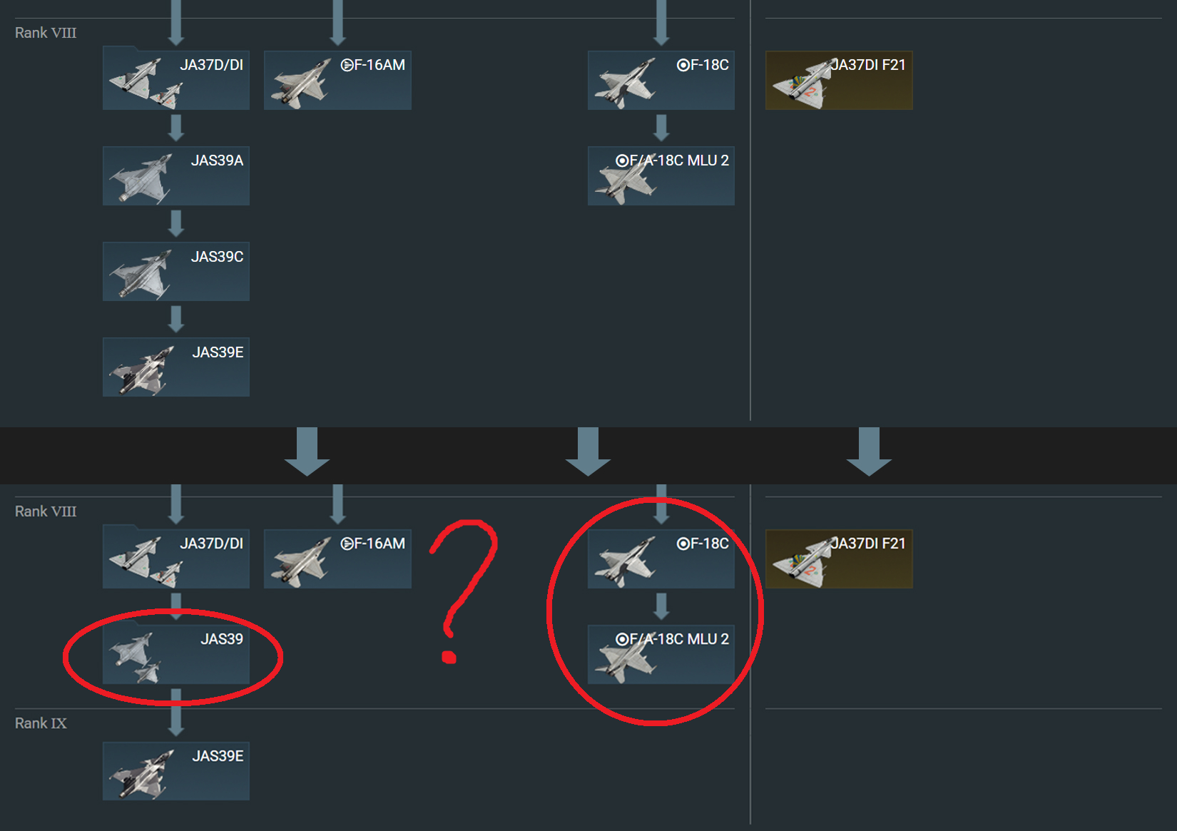 Folder the 2 finish/swedish F-18c’s. Since a large amount of other vehicles are being foldered at top tier this one has little reason to not be foldered aswell when they are the same br as each other. Espescially since both the American and British 14.0 F-18s are being pulled in front of lower br planes so the can be foldered