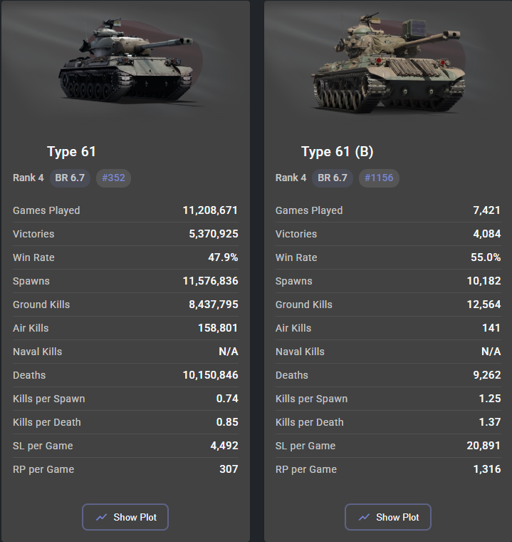 The playerbase for the Type 61 is not equal for the premium vs tech tree. It’s also a far less attractive buy compared to other offers for Japan.