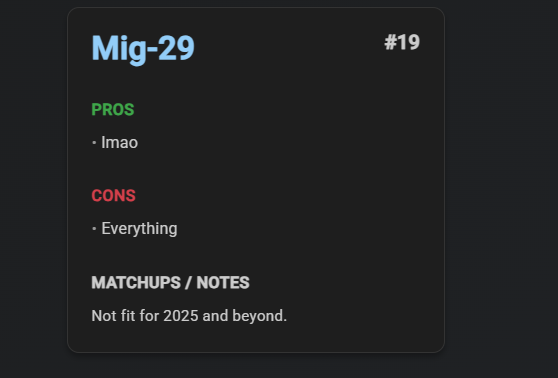 And the mig 29G should not be the same br as the su27 or su33