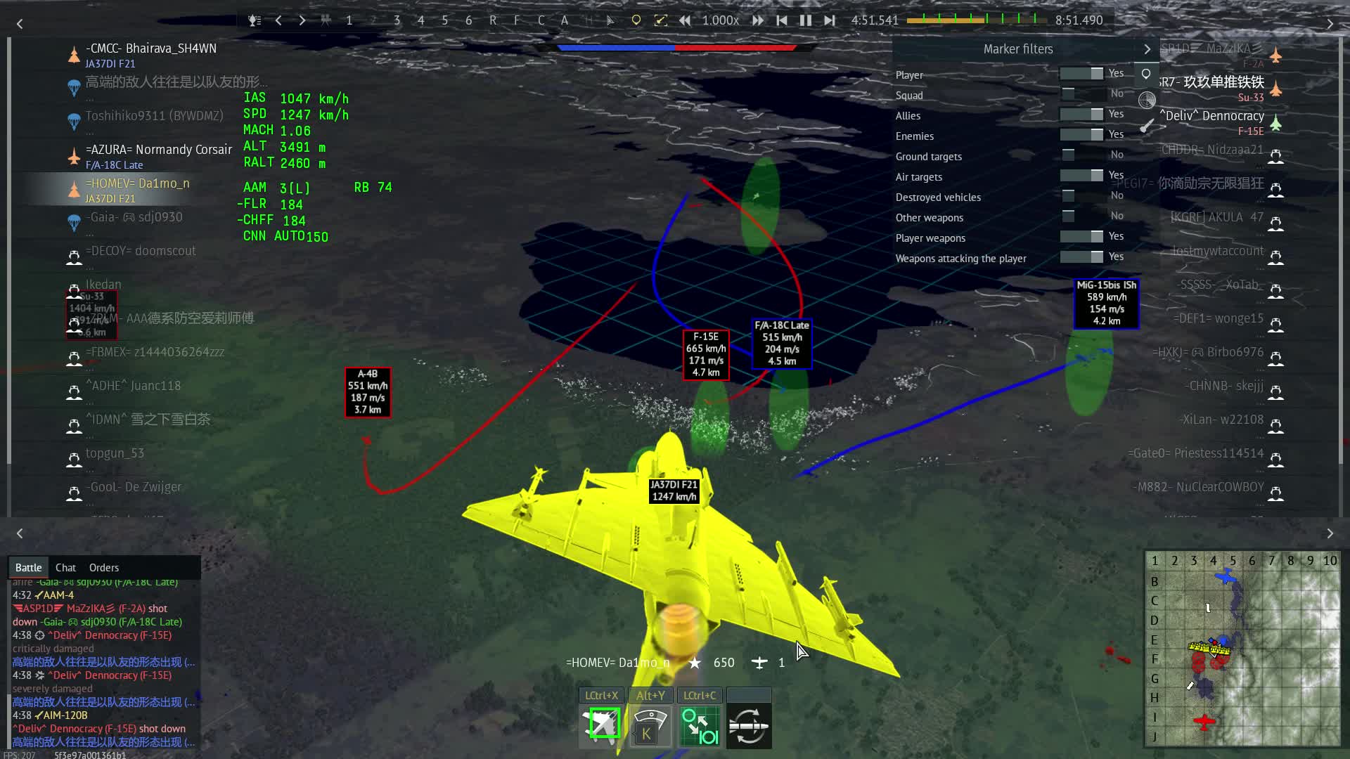I again make note of the youtube short I have. Perfect hardlock on a Mig-23, and upon launching my Skyflash, it tracked my ally.