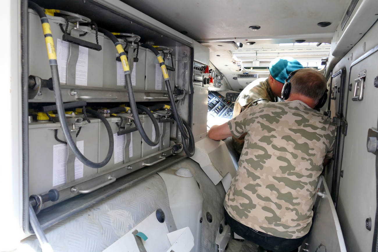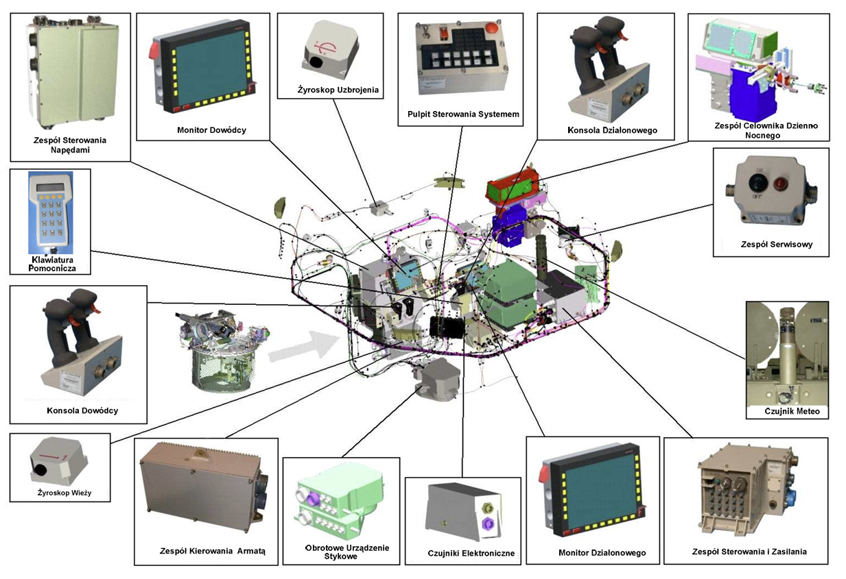 The vehicle is also equipped with various systems, including the CHERDES NBC protection, the TALIN navigation system, Hertz Systems HGPST-T GPS receiver, and the FONET digital communication system. In 2022, the TILDE FC thermal imaging camera began to be phased out in favor of the polish KLW-1R Asteria thermal camera.