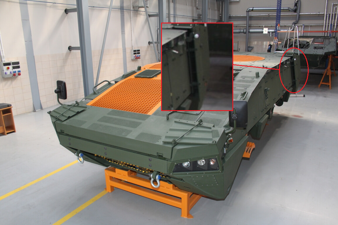 Side panels mounted on the hull are made of 6mm ARMSTAL 500 with 35mm air gap which can be filled with foam to enchance protection