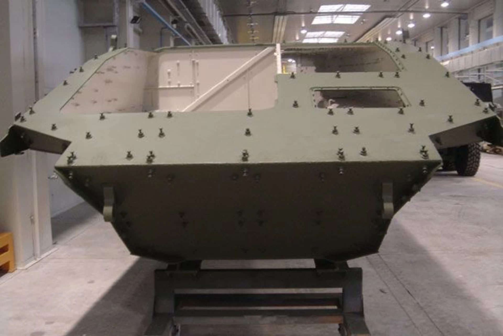 Hull is made of 8 mm of ARMSTAL 500 (HHA) and front from ARMSTAL 550 while floor is made of ARMSTAL 450