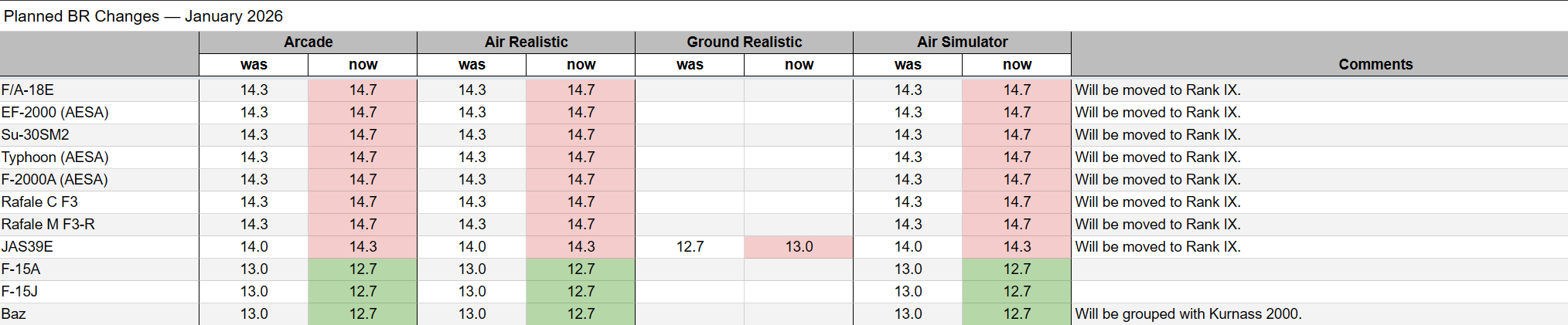 The following aircraft are examples of what 13.0 should be: F-14A IRIAF, F-14B, Tornado F3, F-16A [currently 13.0], Mirage 4000, Sea Harrier, J-8F, F-5TH TCU, F-4F ICE, AV-8B Plus, Kfir C10, 2 Viggens, Gripen.