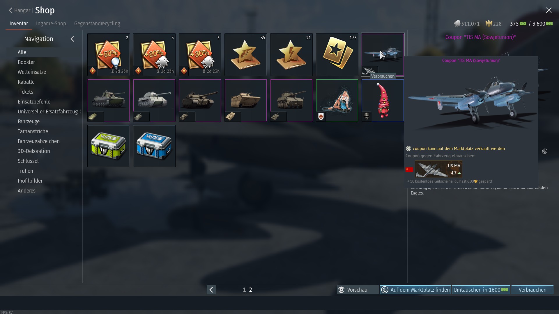 The Vilkas brought in 67 euros, I’ll sell the Boxer for 53 euros, with that I’ll buy what I need in the sale or on the marketplace…