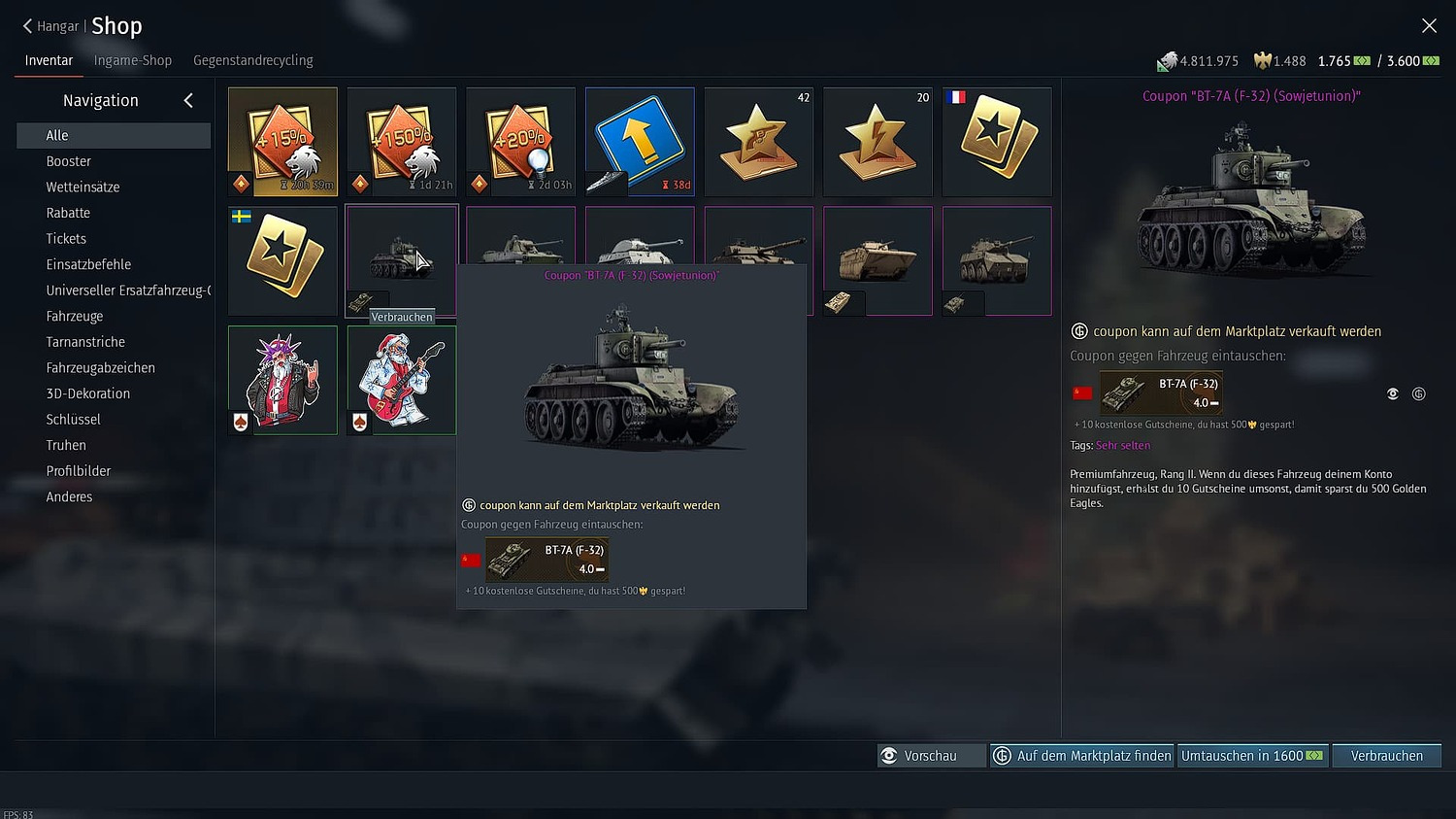 den coupon erspielt, den high tier schrott verkaufe ich gerne…wird zwar wieder 2 jahre dauern, bis der was wert wird…