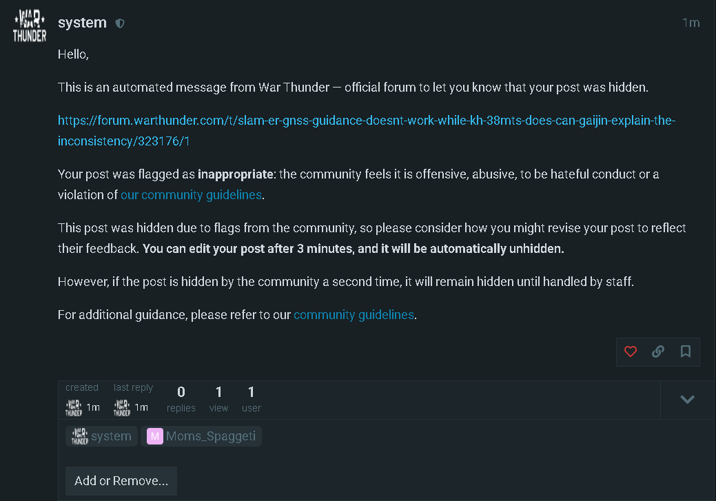 Red text is understandable. If i don’t use ai you will take it down like you have taken down the rest of my posts because feelings got hurt. AI was used to avoid hurting moderator or Gaijin staff feelings. The content of the post is my opinion re-worded and refined by me before posting.