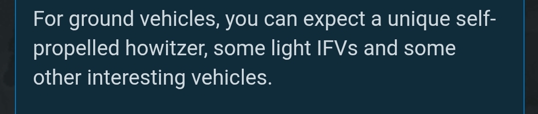 This is really biased, but I think we are due for a major China update. There are countless interesting and unique vehicles, along with up-armor kits, APS, and other add-ons for current TT vehicles. Chinese tree could rival the USSR tree if given the chance, although Gaijin would never let it be equal, let alone better than, Soviet tanks.