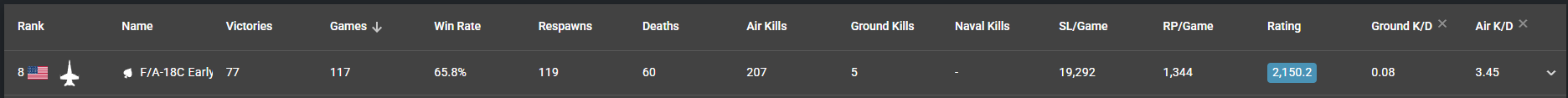 Now, as advertised at the start of the review, I played the F/A-18C early for 117 games (out of 351 games total) in current matchmaker from March 22 to April 11, in order to see for myself whenever the calls for its “update” are valid.