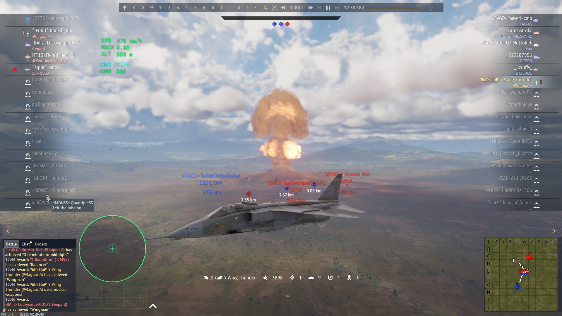 Because of that delay, I don’t have additional evidence like in‑game screenshots. The only evidence I have is the replay available on the War Thunder website (attached above). At the time, I believed this was server-side and that the nuclear strike was counted, but the profile statistic simply wasn’t updated. I remember that I received the achievement at the end of the battle, and I even got an extra 15,000 Silver Lions, but because the Atomic Ace showcase was broken, it didn’t update correctly.