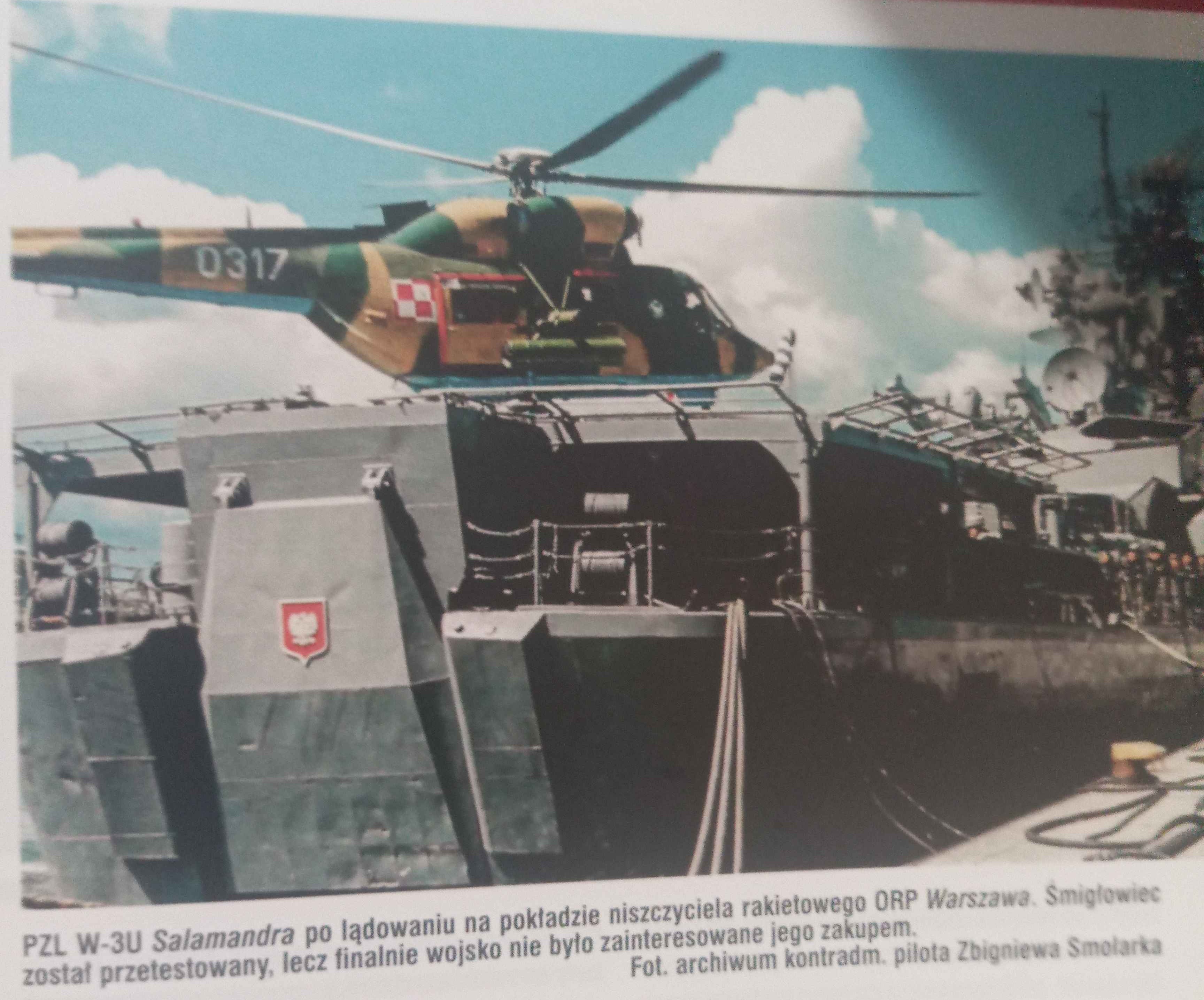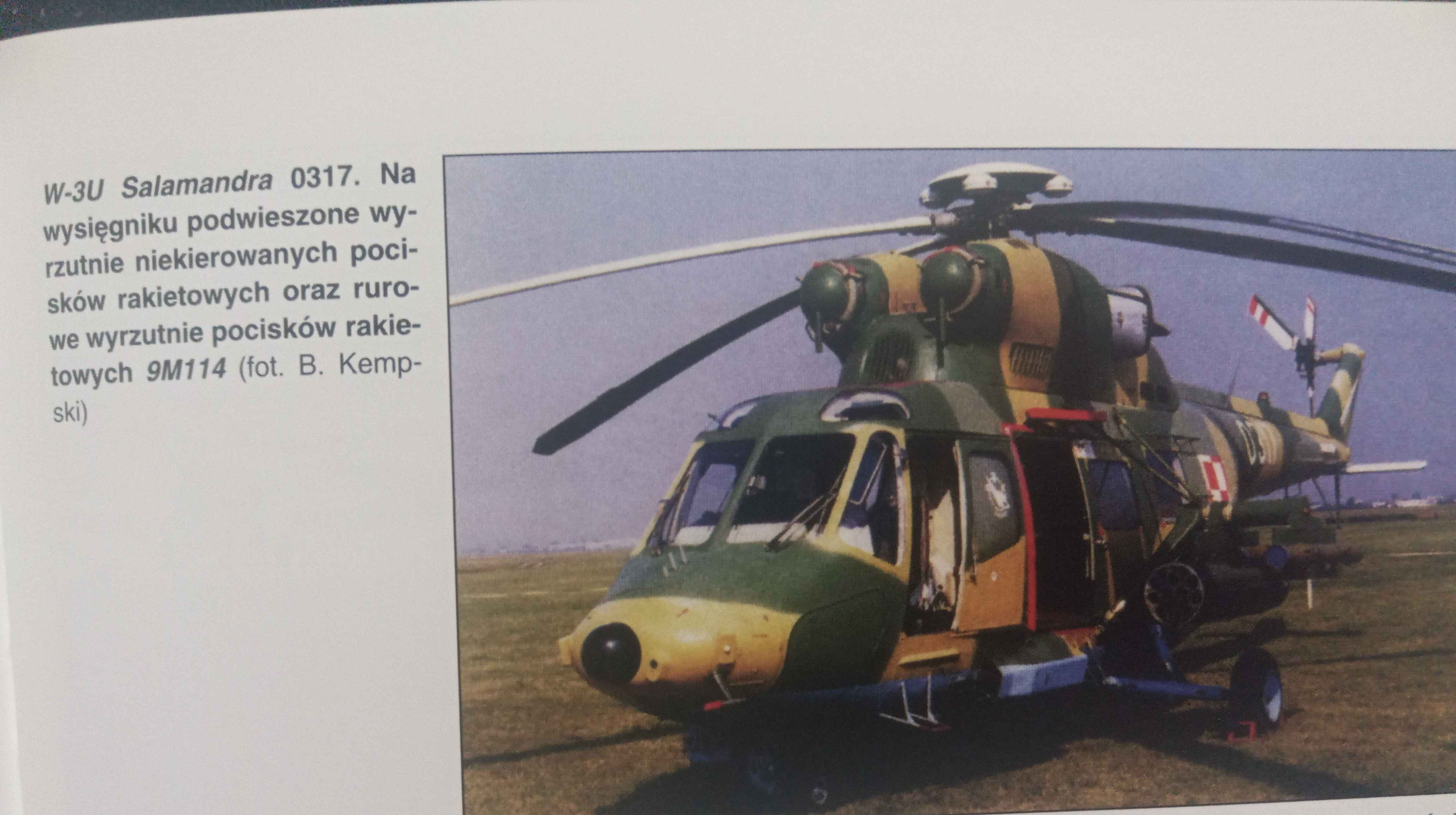 In the mid-1980s, work on military variants of the PZL W-3 Sokół helicopter began in the Polish People’s Army (LWP). It was planned that W-3 helicopters would replace the aging Mil Mi-2 helicopters in the LWP. At that time, the creation of specialized versions of the PZL W-3 helicopter was planned, including a transport version (the future W-3T) and an armed version (the future W-3U). In 1988, the Polish People’s Army, together with the Russians, began work on a new combat helicopter, which was intended to be based on the PZL W-3 helicopter, to replace the combat versions of the Mil Mi-2 helicopter (Mi-2 URN ‘Żmija,’ Mi-2 URP ‘Salamandra,’ Mi-2 URP-G ‘Gniewosz’) and to have integrated armament with the Mil Mi-24W helicopter (the Polish designation for the Mil Mi-24V). The first project was the W-3U Viper (Żmija) helicopter, but it was abandoned. Instead, the variant designated as W-3U Salamandra was chosen. During the design work and prototype construction, in 1989, the political system in Poland changed from communist to democratic. At that time, the Polish People’s Army (LWP) was transformed into the Polish Army (WP), but there is no information on whether this affected the work on the W-3U Salamandra helicopter. To convert the W-3 Sokół helicopter into the armed W-3U Salamandra, engineers from the PZL Mielec plant decided to install a 23 mm GSz-23Ł cannon on the left side of the fuselage (later moved to the right side of the fuselage). On the right side of the fuselage, a targeting head for guided missiles 9M114 Szturm-W and 9M14M Malutka was installed. The fuselage was reinforced to allow installation of pylons for suspended armament. Initially, the tail pylon was equipped with half-apex flares and ASO-2W anti-radar chaff dispensers (which were later moved to the sides of the rear fuselage behind the transport cabin doors). The prototype PZL W-3U was completed in the winter of 1990, and its first flight took place on March 17, 1990. In the summer of 1991, field tests of the W-3U Salamandra helicopter began at the Air Forces’ training ground in Nadarzyce and the Navy’s training ground in Strzepcz. The helicopter’s pilots were Colonel Pilot Leon Naumowicz and Rear Admiral Pilot Engineer Zbigniew Smolarek. The first combat tests involved testing the GSz-23Ł 23mm gun during day and night firing. The gun proved to be accurate and effective, but due to a design flaw, during one of the tests, the helicopter’s nose was fired upon. This led to a redesign of the helicopter’s nose and moving the gun mount from the left to the right side of the helicopter. Subsequently, tests were conducted on the operation of unguided S-5 57mm rockets and S-8 80mm rockets, which were successful. Afterward, tests began using the 9M114 Shturm-W guided missiles. They were first tested on a land proving ground, where the results were satisfactory. Later, at the suggestion of the helicopter crew, the 9M114 missiles were tested against naval targets. For this purpose, four drop tanks from Lim fighters (the Polish license version of the Mig-15/17 fighters) were used. Since the test was not strictly related to the Polish army, the helicopter crew only had one 9M114 missile at their disposal, which managed to hit a target from a distance of up to 7,200 m, exceeding the missile’s range specified by the manufacturer (5,000 m). Despite this success, after the tests using guided missiles, it was found that the helicopter’s skin had wrinkled due to the heat generated during the firing of the guided missiles. Therefore, after testing on the prototype W-3U Salamandra, a few improvements were implemented (relocation of the gun, relocation of the countermeasure launcher, reinforcement of the fuselage, modification of cockpit equipment). Unfortunately for the PZL W-3U Salamandra, the first half of the 1990s saw an economic crisis in Poland, and the military lacked funding and interest in a new combat helicopter. In 1992, the PZL Świdnik plant decided to convert the W-3U into a transport helicopter under the designation W-3UT and include it in a fleet of 10 PZL W-3T transport helicopters sold to Burma. The helicopter left Poland in mid-1992. Unfortunately, the fate of the PZL W-3U Salamandra is unknown. Experience gained during the development of the W-3U led to the development of the prototype W-3K Kentron and W-3WB Huzar, as well as the production W-3W (WA) Sokół.