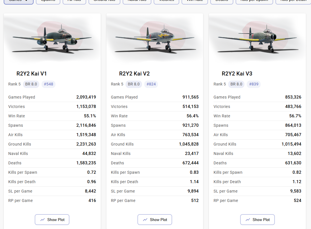 Not only average stats, but also haven’t considered that R2Y2 has already removed the air respawn, and not only in ARB, GRB 7.7 Japan also needs a good jet figther(F84G is just a CAS plane)