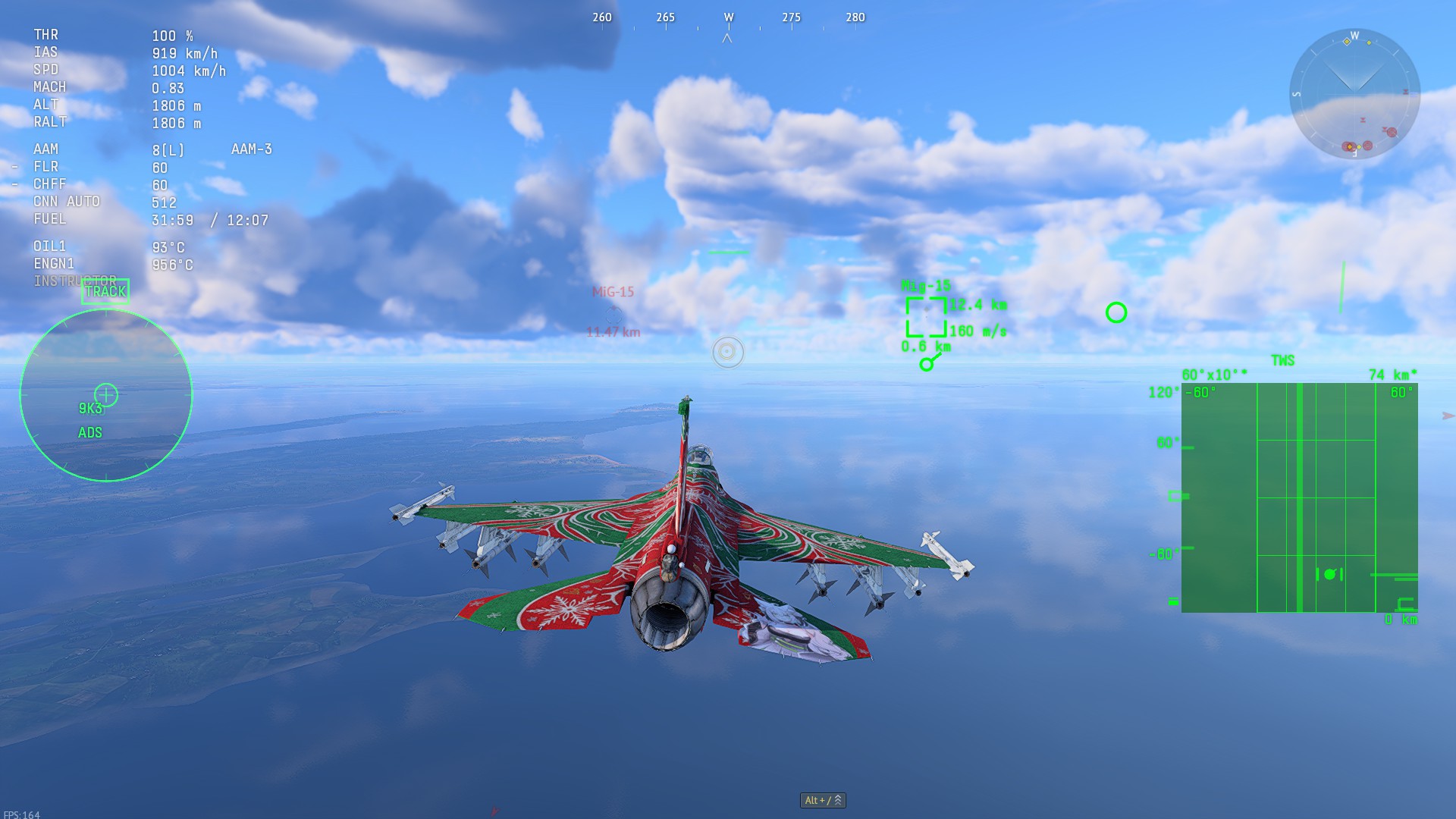 In the screenshot, I am in a test drive, and I can scan and target the two Mig-15s, but only one dot appears at a time, and I can only see the other if I swap targets. This has happened consistently for multiple planes from this F2A ADTW, to my F14A, F18A, MiG-29, F15E.