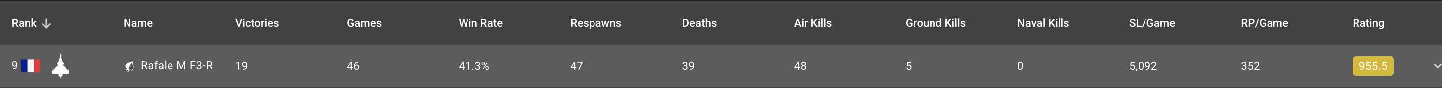 The Rafale M and C are both becoming one of the worst in their BR, the win rate in recent times have massively dropped to, I score around 1 kill a match with it and just die.