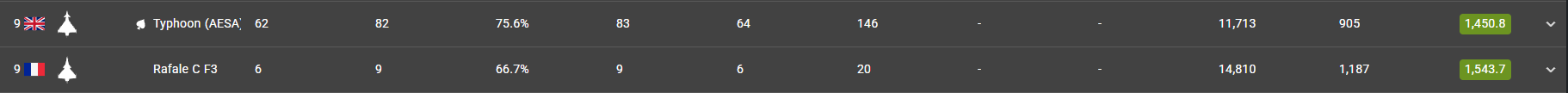 I already addressed this argument, please read next time. The British Eurofighter has a higher K/D and higher KPS than the Rafale. If its performance was because it was on the same team as the Rafale, then the opposite would be the case, with the Rafale having the higher stats and bringing the British Eurofighter “up”.