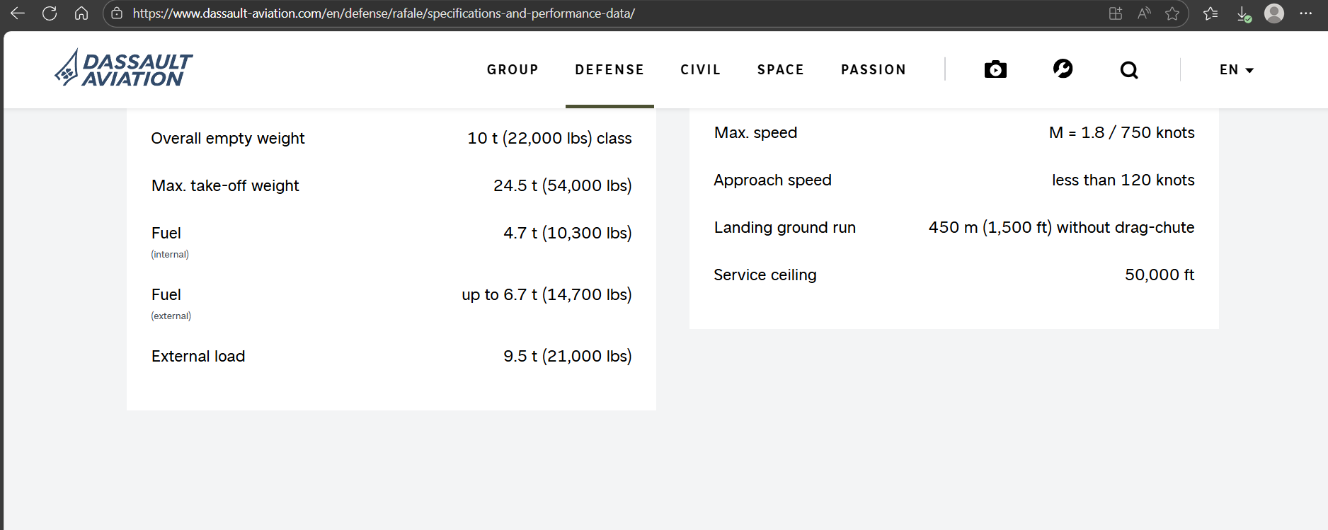 But as we know this is only really applicable to the Rafale M (carrier variant), not the Rafale C which is ~9,300kg empty weight.