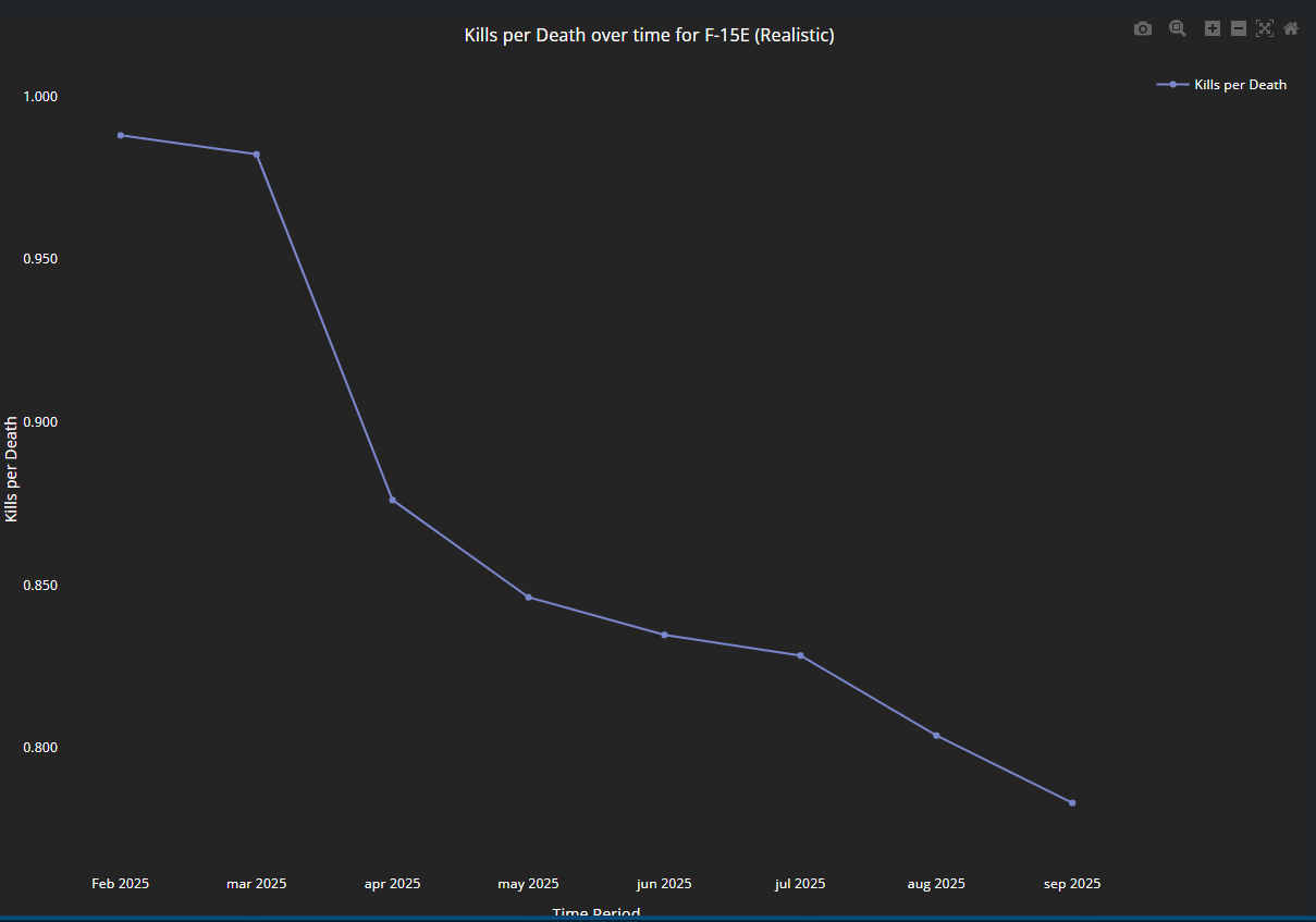 Tbf jokes aside, this maybe because F-16C and F-15E recently got buffed, since American Winrate is increasing last month. Since British EFT winrates also decreasing due to they always teammed up with Rafale, ironically, the Italian EFT still sits at such lower winrate.
