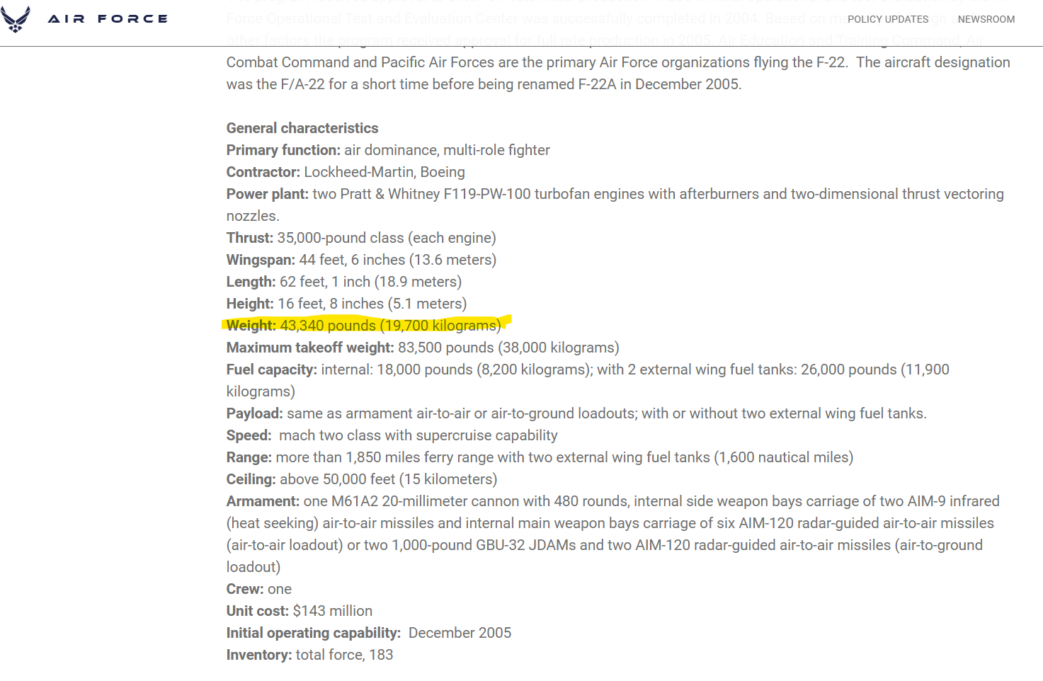 bro for a 5th gen f-22 ain’t all that in terms of thrust to weight wow, it’s so mediocre