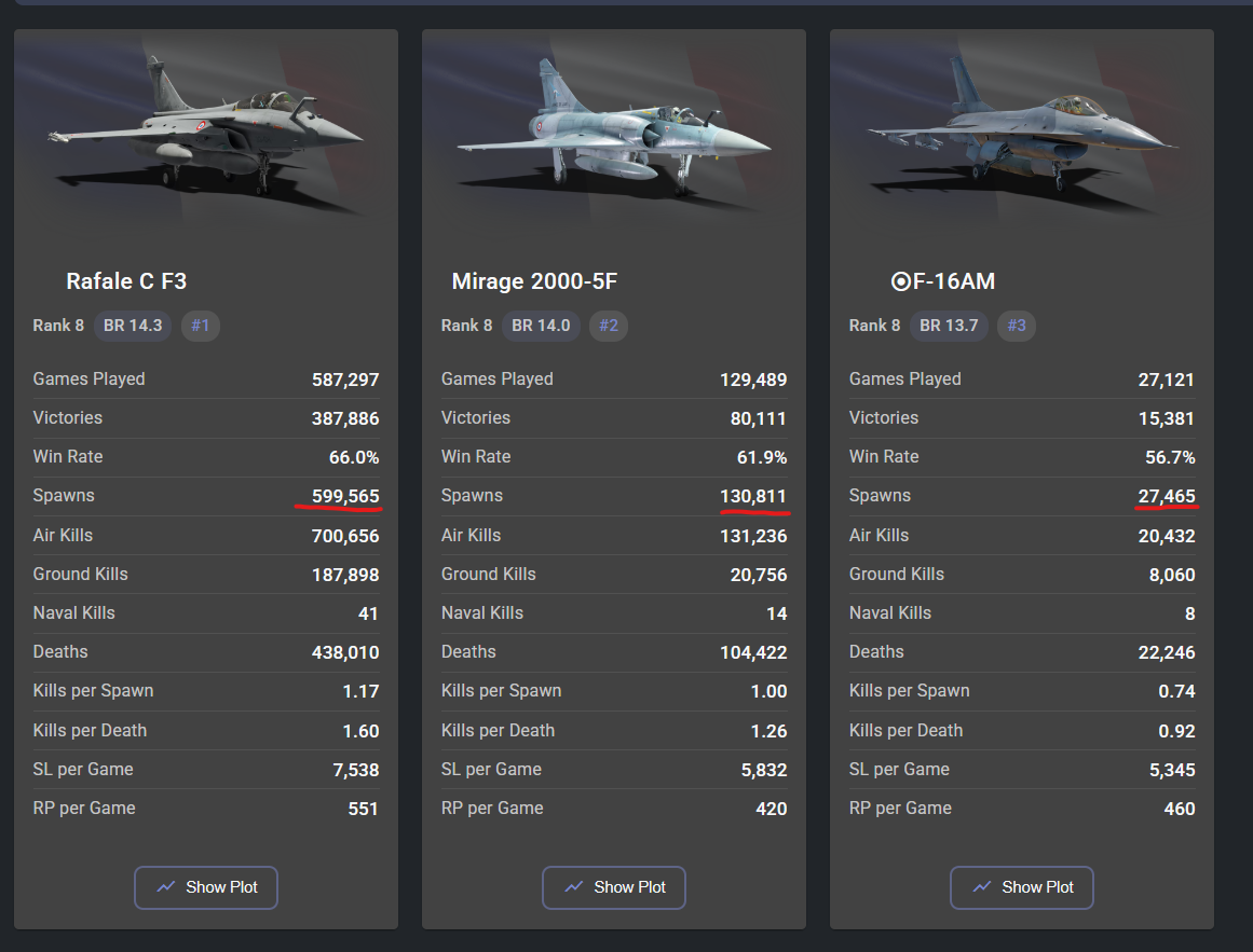 how are the rafale mains able to farm a nearly 70% win rate consistently while im over here fighting for my life to keep it over 50% when playing the su-30, even good planes, cracked missile + good airframe goes crazy