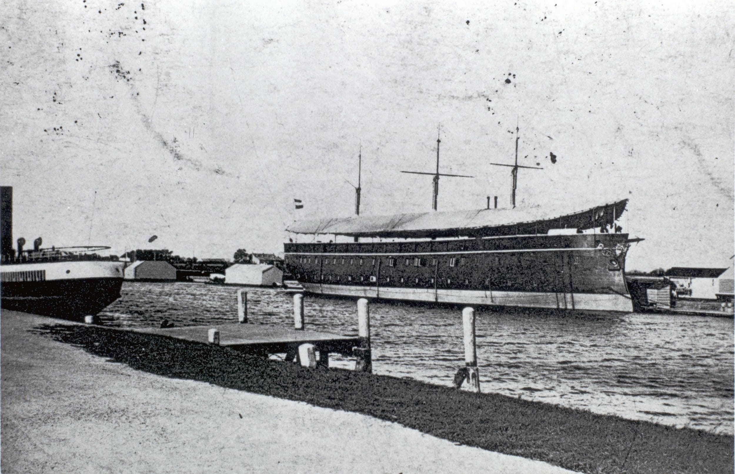 Source: Foto'sIn 1896 the ship was taken out of service and turned into a lodging vessel. She had all her propulsion systems, guns and armour removed. Her interior was completely changed, and on one deck six 12 cm guns were added, most likley for basic gunnery training.