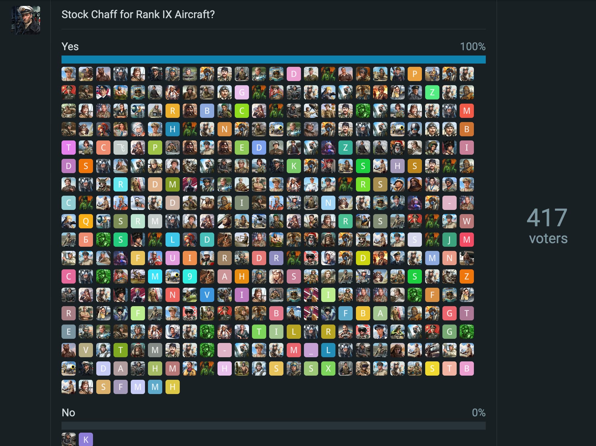 tbf i voted yes and im still incredibly skeptical Gaijin are even going to address it, let alone implement it. They dont pay attention to DevServer feedback on the forums, something we are aware off ever since the basket addition.
