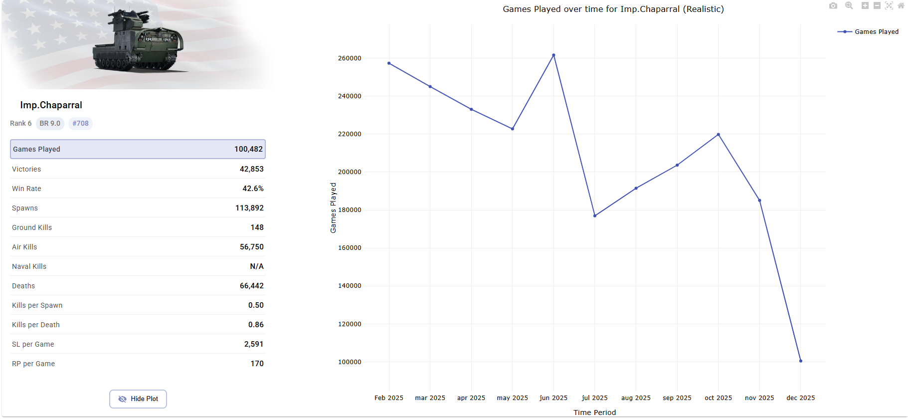 Didn’t say I was great or even good at it but I do know how to play it. All of my unlocked US SPAA are spaded because I guess I’m one of the few who actually plays SPAA. The stats don’t reflect how many times I’ve capped in them , gotten assists, or repaired teammates and helped put out fires for teammates who haven’t unlocked fire extinguisher mod. Doing this while attempting to avoid getting killed by ground vehicles who outgun me and aircraft whose missiles and bombs often have me in firing range before I have them in firing range in a lightly to non armored vehicle.