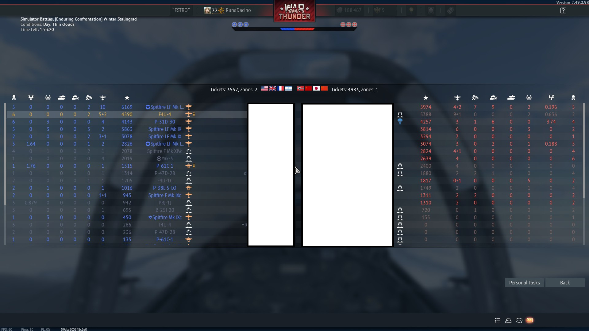Back on the spawn menu now, the Spitfire is on cooldown, BUT, I can still spawn it immediately for 30.000, which I won’t because the price seems too steep, so I spawn the Tempest for 7200SL and go about shooting down planes, but I crash when landing.