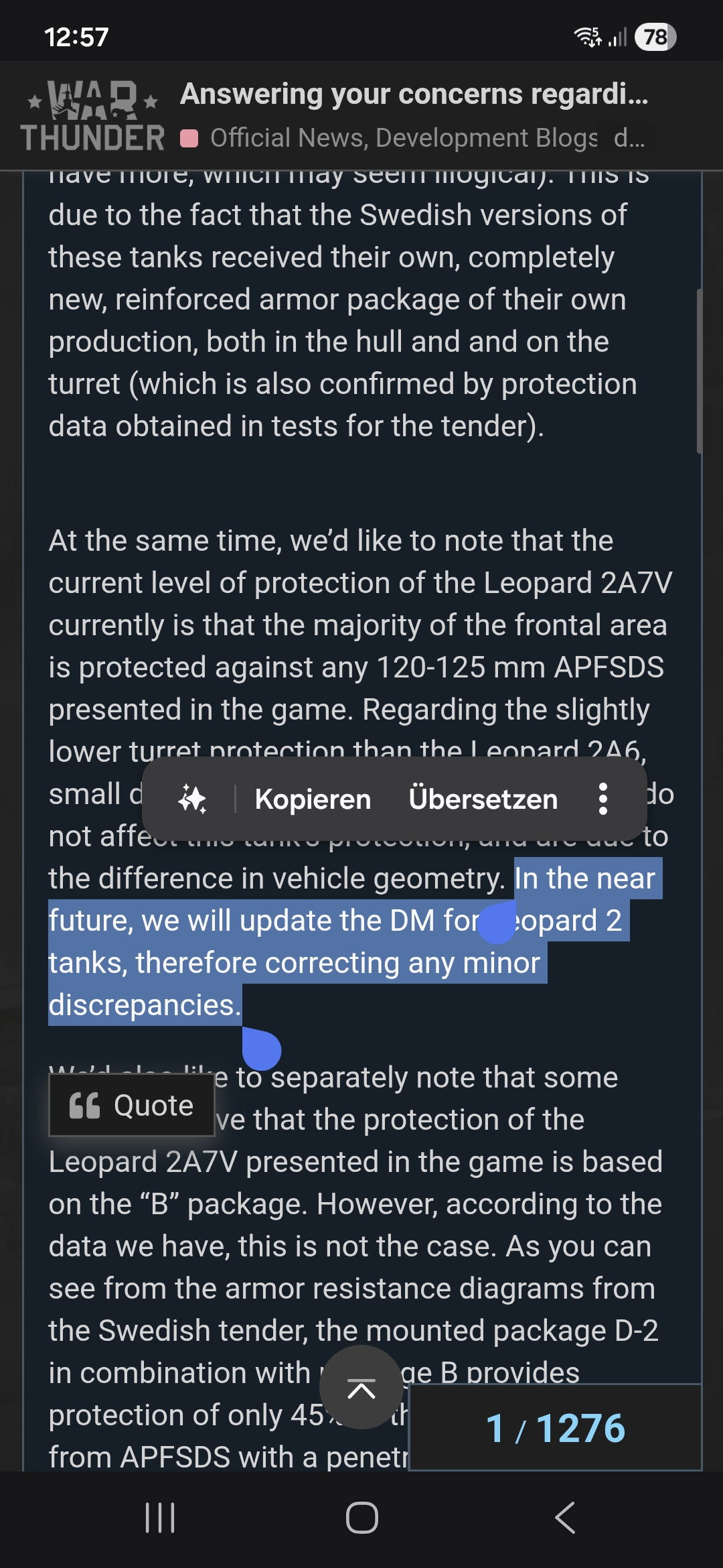 Overall I just don’t think the current reasoning is sufficient; a couple of higher performing Leopard 2s (Strv 122 series and 2A7s) should not be dictating the weaker performing 2A5/6 family of Leos and it’s not like you guys have not artificially nerfed the 122B PLSS and 2A6 reload rate from way before (changing the reload from 6s aced to 7.8s aced) for balance. So my suggestion really is that the 122s and 2A7 series can retain the current reload but the weaker performing Leos can and should receive a reload buff to match.