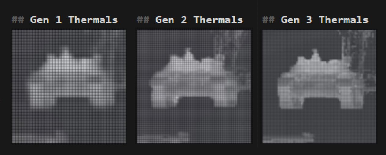 As for finding images of generation 1 thermals, they still produce them. Not on tanks, but they are still produced for industry purposes due to their affordability over more advanced solutions.