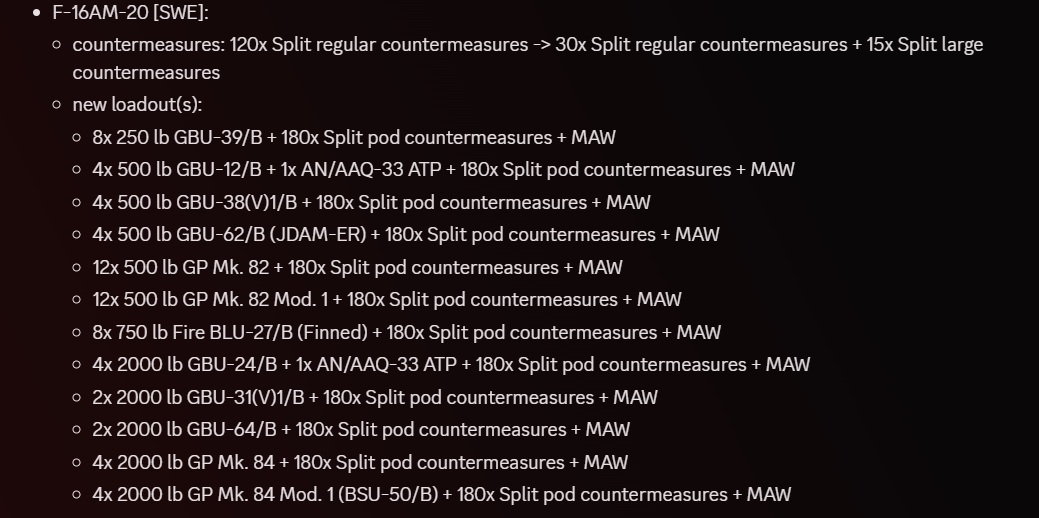 So why does the Belgian F16 get to keep 120 countermeasures? And I’d rather have 120 normal countermeasures than having a pod MAW that only work for bombs.