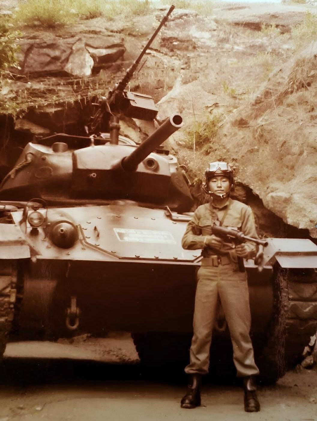 This photograph was taken around 1990 in Kinmen. The M24 tank shown is suspected to belong to the Jindong Division. On the lower front armor plate of the vehicle, the following text is stenciled: