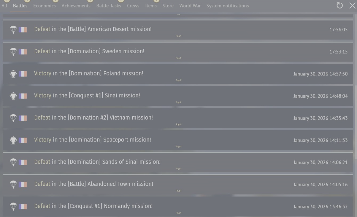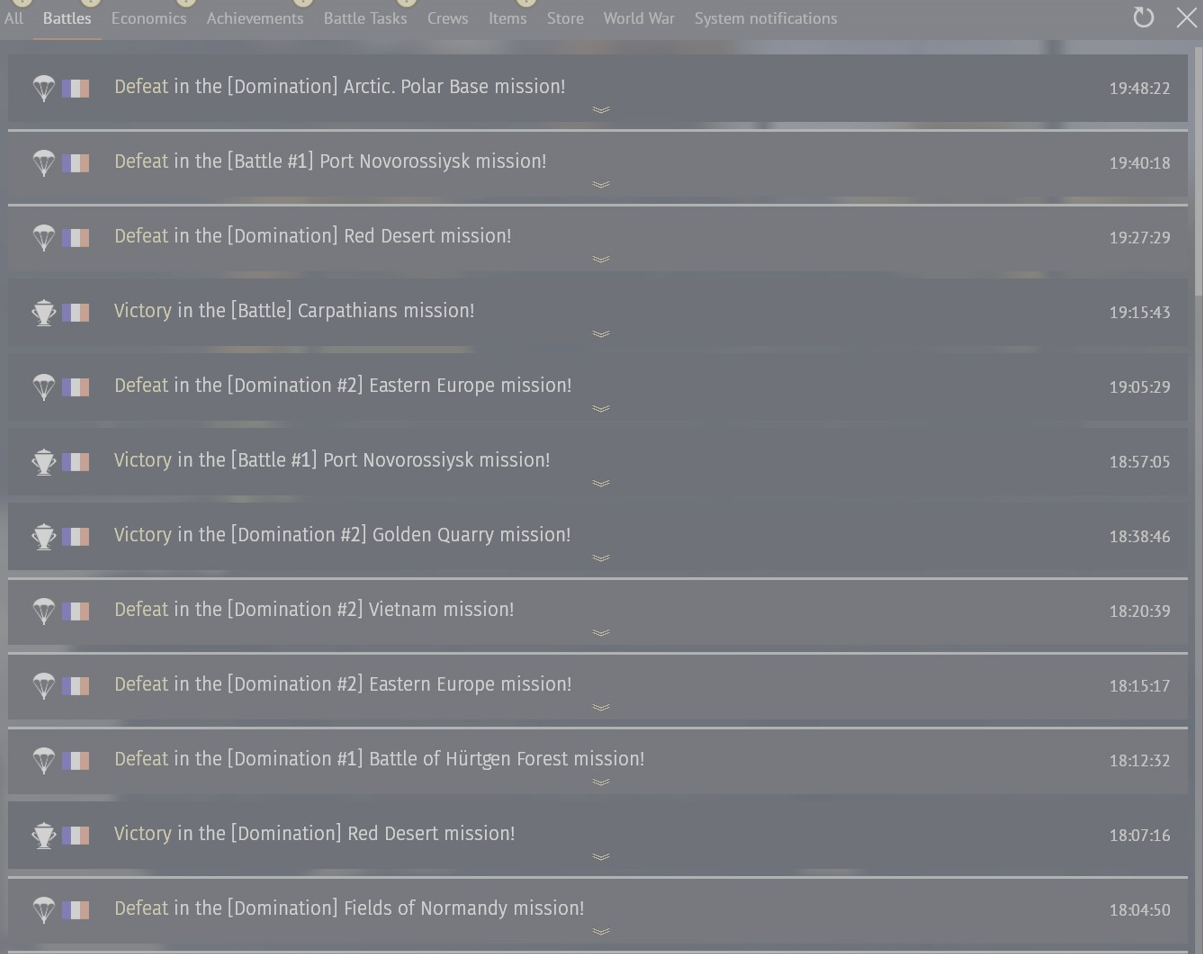 I registered 14 losses VS 7 wins, among those 4 wins along with Russia, so basically 18 wins for Russia VS 3 wins for NATO. Russia has a 86% winrate at 12.7 GRB.